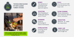 We slowly simmer our turkey stock for up to 14 hours infusing each batch with layers of natural flavours.